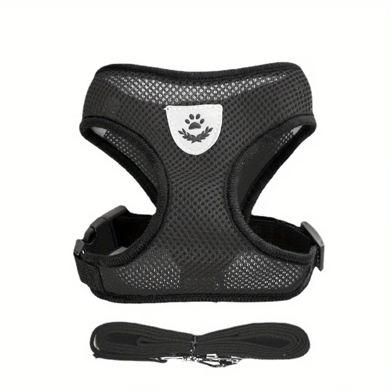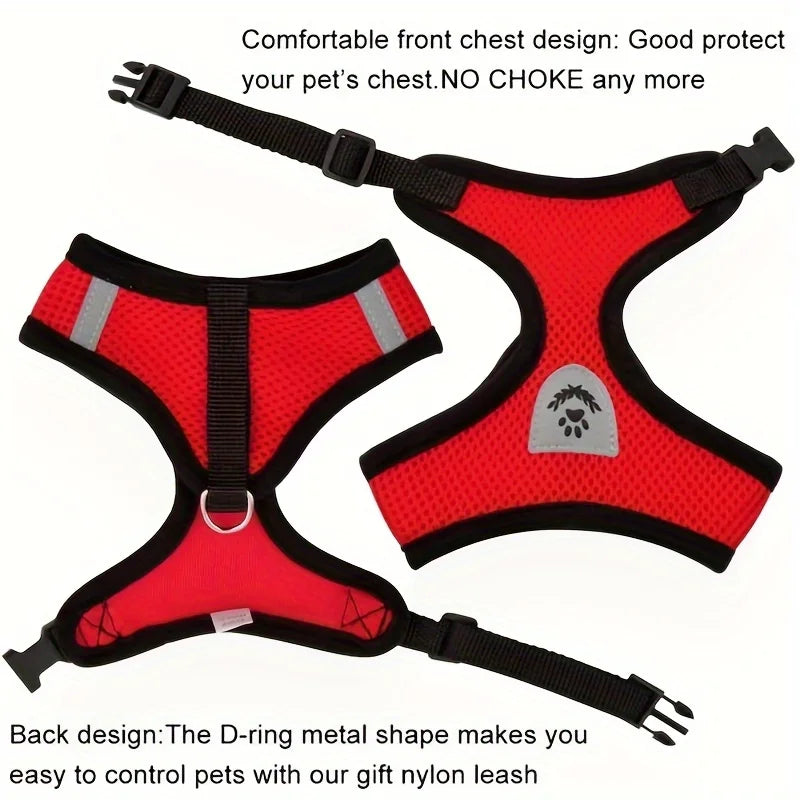 Conjunto de arnês e guia refletivos para cães e gatos, arnês ajustável para filhotes e gatos com malha macia