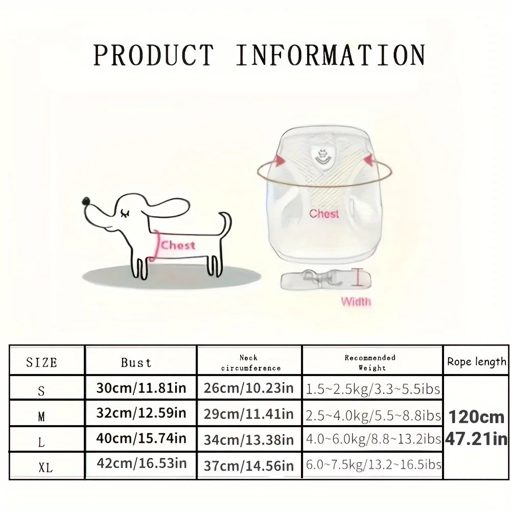Conjunto de arnês e guia refletivos para cães e gatos, arnês ajustável
