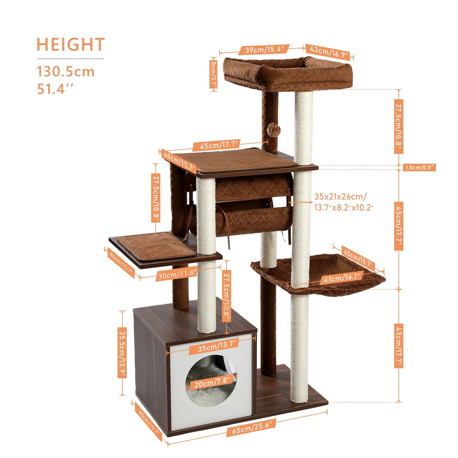 Nome: Altura 130,5 cm Cat Tree Condo Torre de plataforma multinível