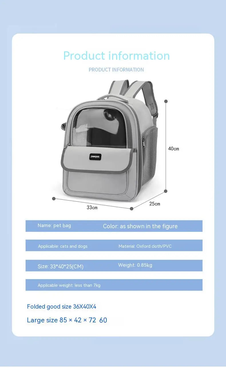 Mochila para transporte de animais de estimação, bolsa de viagem para animais de estimação, portátil, respirável, para cães, transparente, grande espaço