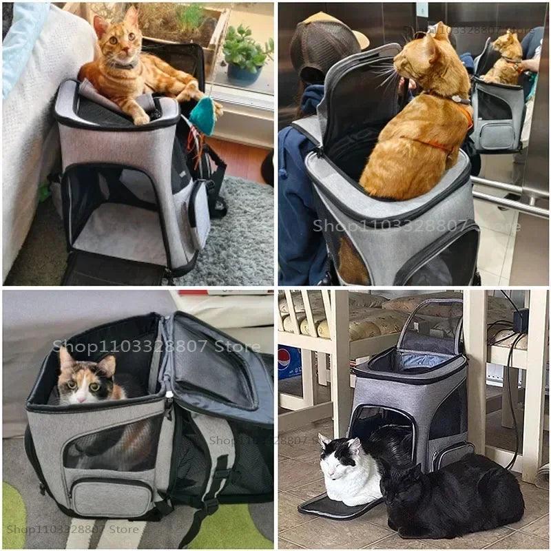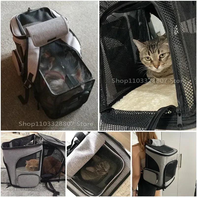 Mochila para transporte de animais de estimação, bolsa de viagem dobrável e respirável, expansível, grande capacidade, criativa para cães e gatos