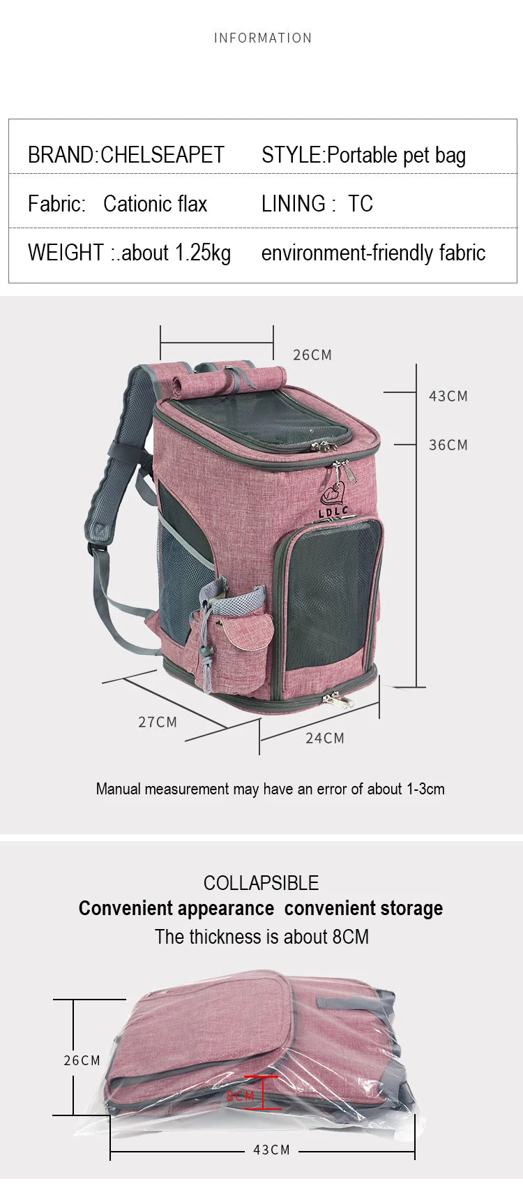 Mochila para transporte de animais de estimação, bolsa de ombro respirável para viagens ao ar livre para cães e gatos pequenos, pacote portátil, transporte de suprimentos para animais de estimação