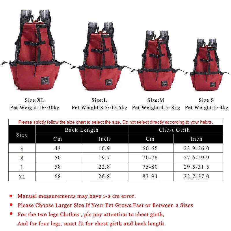 Mochila de ombro duplo para cães ao ar livre, bolsa de transporte refl