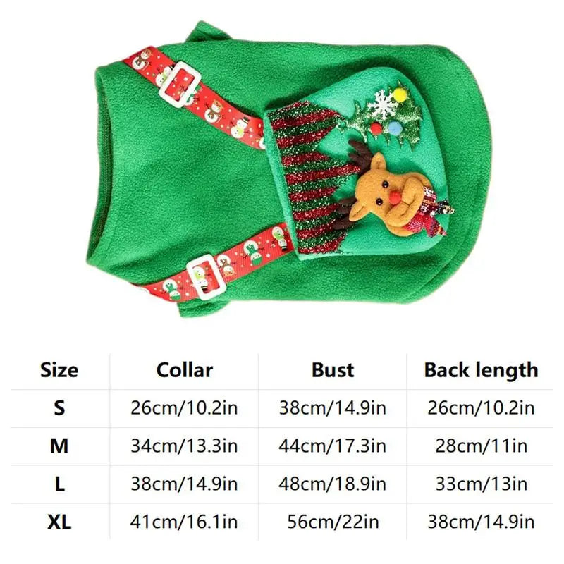Presenteie-o com esta adorável roupa de Natal com estampa de rena e mini mochila decorativa , projetada para transformar cada passeio, cada abraço e cada foto em um momento inesquecível. Confortável, macio e fácil de vestir, fará do seu companheiro a estrela indiscutível das festividades .